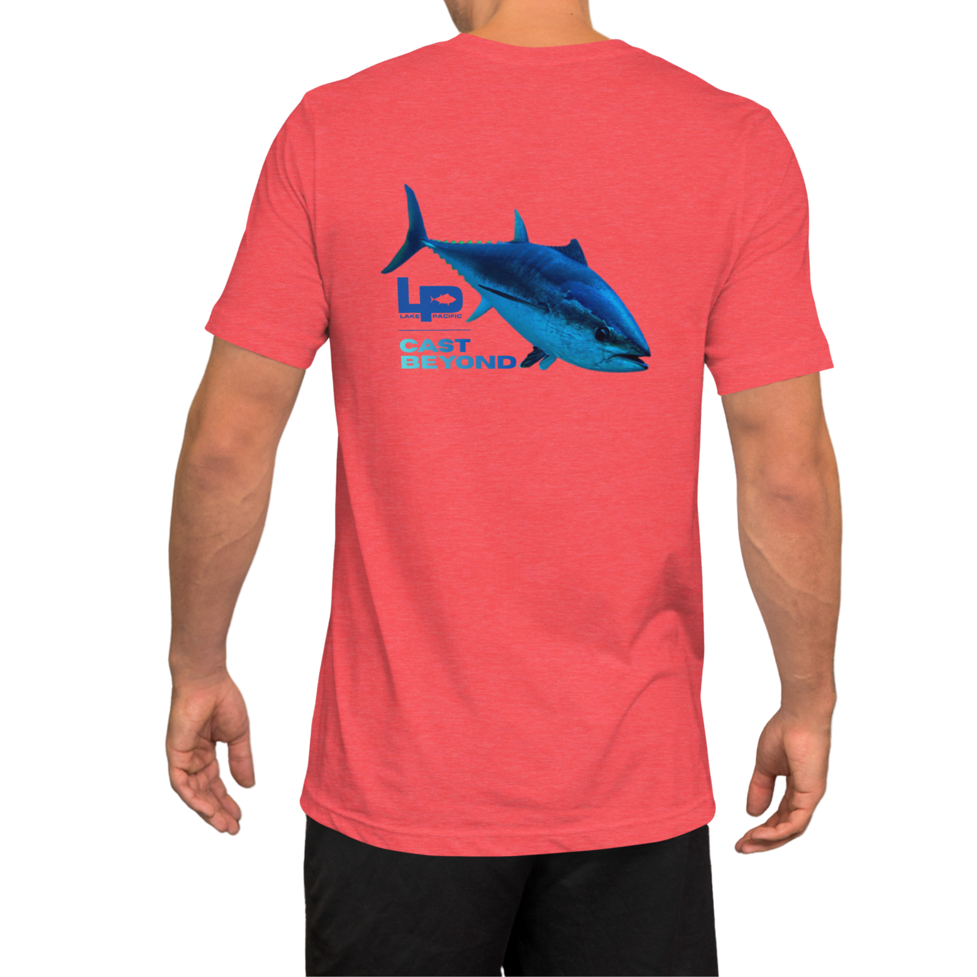 Powerful, fast, and relentless, the Cast Beyond Bluefin design pays tribute to one of the ocean’s most iconic predators. Featuring a bold Bluefin Tuna graphic paired with the Lake Pacific mark and Cast Beyond mantra, this tee captures the pursuit-driven mindset of anglers who respect the fish as much as the fight. Cleanly composed and unmistakably offshore, it’s a statement for those who chase big water, big runs, and bigger moments.